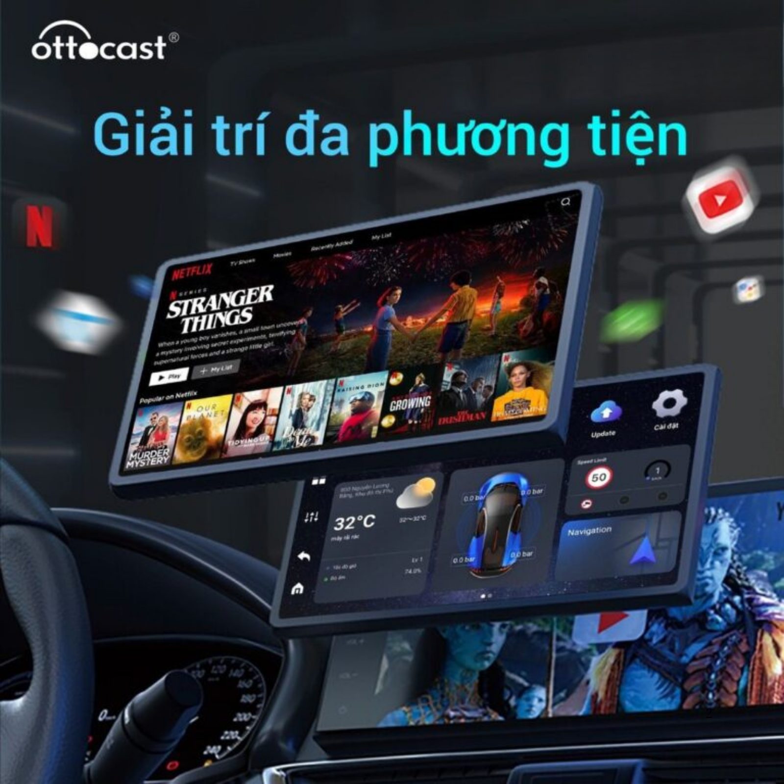 Lấy Android Box Ottocast AI P3 làm trung tâm, bạn sẽ dễ dàng kết nối màn hình trung tâm và chia sẻ hình ảnh đến màn hình gối.