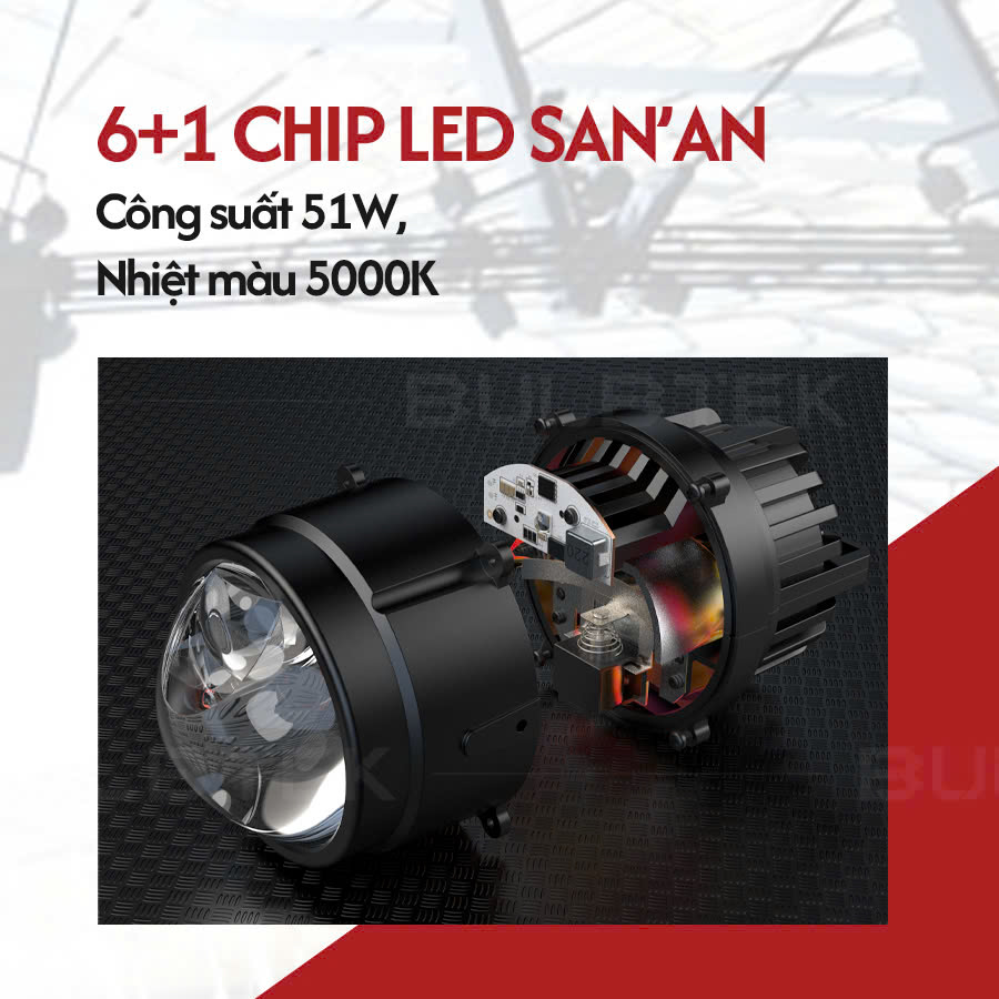 • Bi Gầm Ô Tô Bulbtek Blackhole được trang bị 6 chip LED cos và 1 chip pha lớn công nghệ mới từ Sanan – tập đoàn sản xuất chip LED nổi tiếng toàn cầu – và thấu kính cỡ lớn 3 inch, Blackhole cho vùng sáng rộng và bám đường cực tốt. Khoảng cách chiếu xa tối đa của sản phẩm đạt tầm chiếu xa đến 500m (thông qua các bài kiểm tra thực tế tại Việt Nam) giúp đảm bảo khả năng xử lý những tình huống cấp bách.