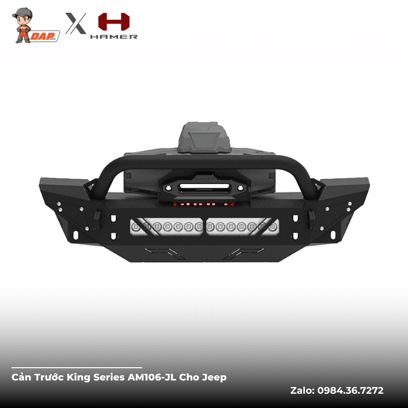 Nếu bạn đang tìm kiếm một món nâng cấp vừa đậm chất chơi, vừa thực dụng cho chiếc Jeep của mình, thì cản trước Hamer King Series AM106-JL chính là lựa chọn hoàn hảo. Với thiết kế hầm hố, chuẩn off-road, tích hợp sẵn vị trí lắp tời kéo và móc cứu hộ, AM106-JL không chỉ giúp chiếc Jeep nổi bật trên mọi cung đường mà còn sẵn sàng đồng hành trong những tình huống địa hình khắc nghiệt nhất.