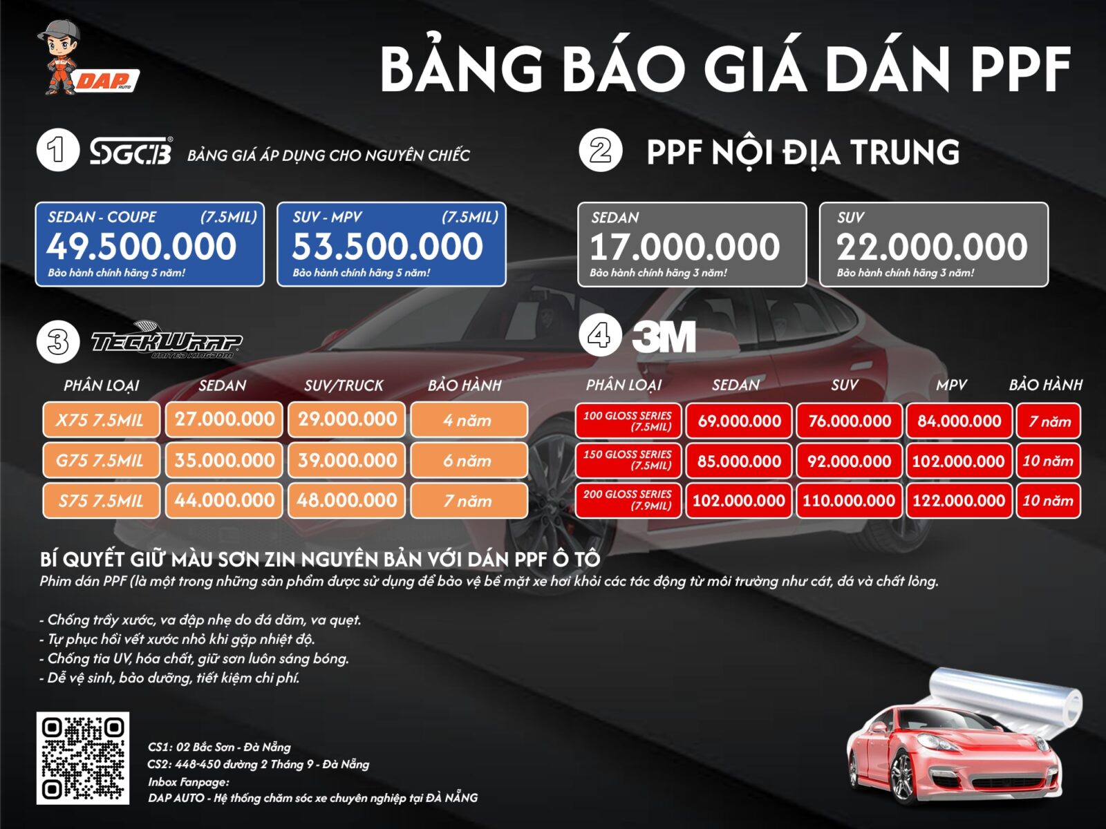 Bảng Giá Dán PPF ô tô tại Đà Nẵng.
