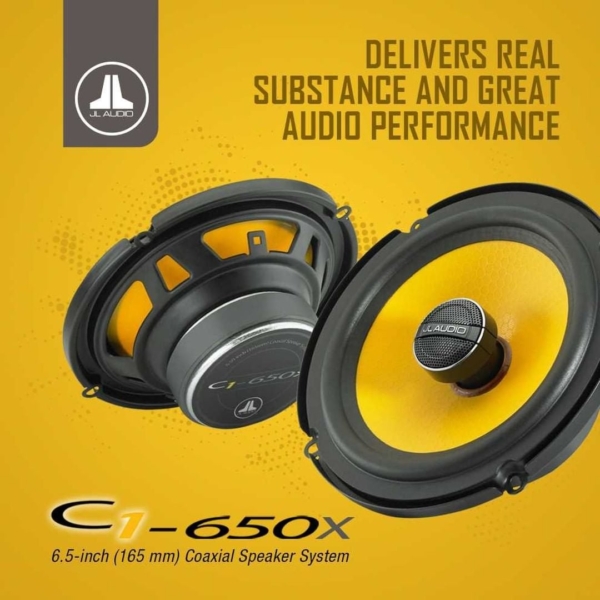 Bộ loa đồng trục JL C1-650X bao gồm 2 Loa trầm 6,5 inch (165 mm) kết hợp với loa tweeter mái vòm bằng nhôm nằm trên màng loa