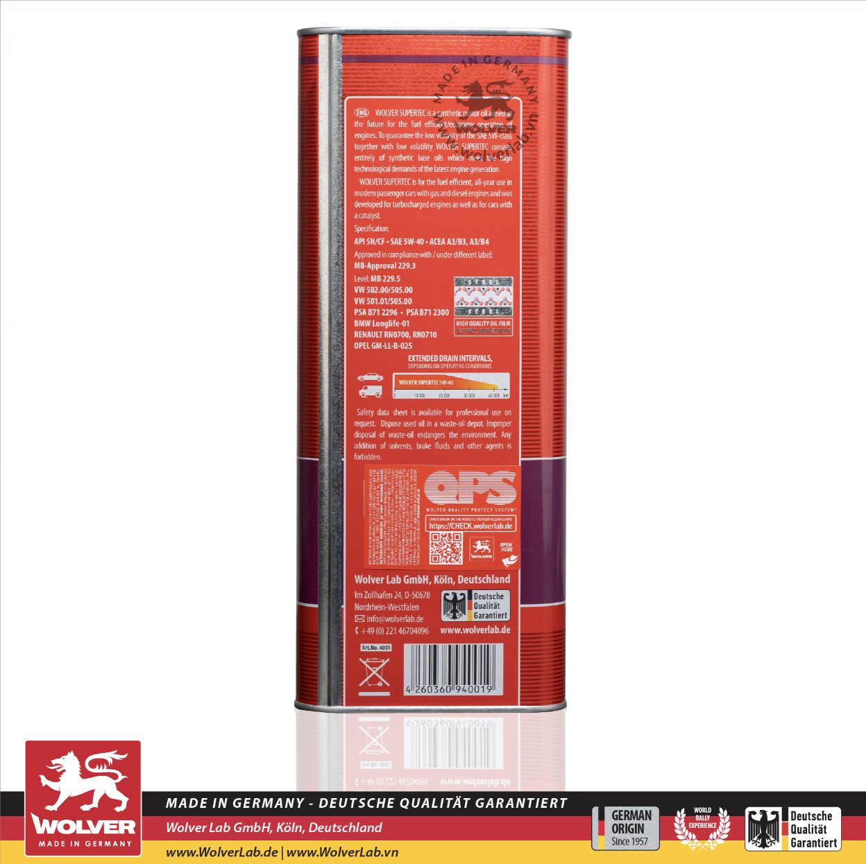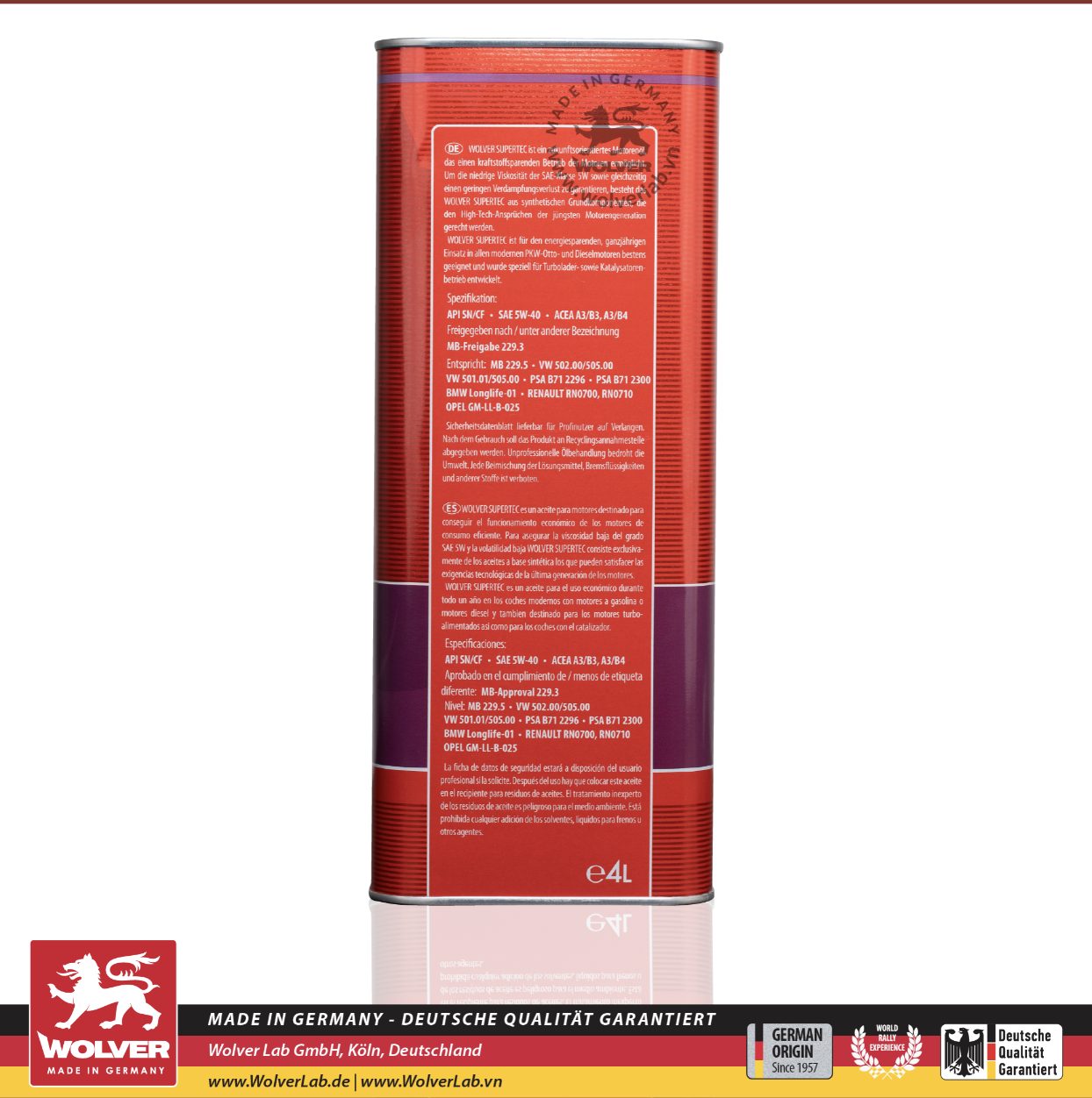Thông Số Kỹ Thuật Của Wolver SuperTec 5W-40 4L