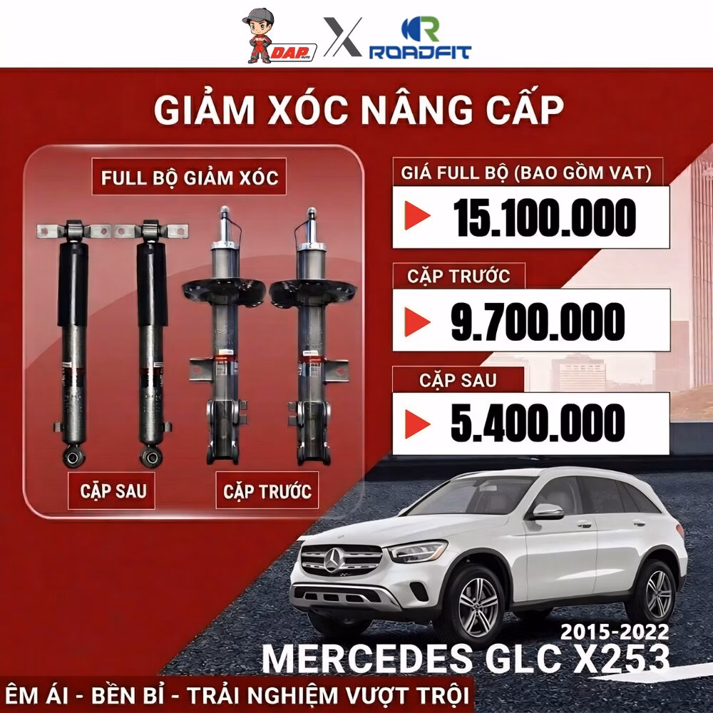 Phuộc giảm xóc Roadfit cho Mercedes GLC X253 (2015 – 2022) là sự lựa chọn hoàn hảo để thay thế hệ thống treo nguyên bản đã xuống cấp. Được thiết kế chuẩn theo thông số kỹ thuật của Mercedes-Benz, Roadfit mang lại sự cân bằng tuyệt vời giữa độ êm ái của xe hạng sang và sự bền bỉ của công nghệ giảm chấn, giúp các bác tài lấy lại cảm giác lái mượt mà như lúc mới mua.
