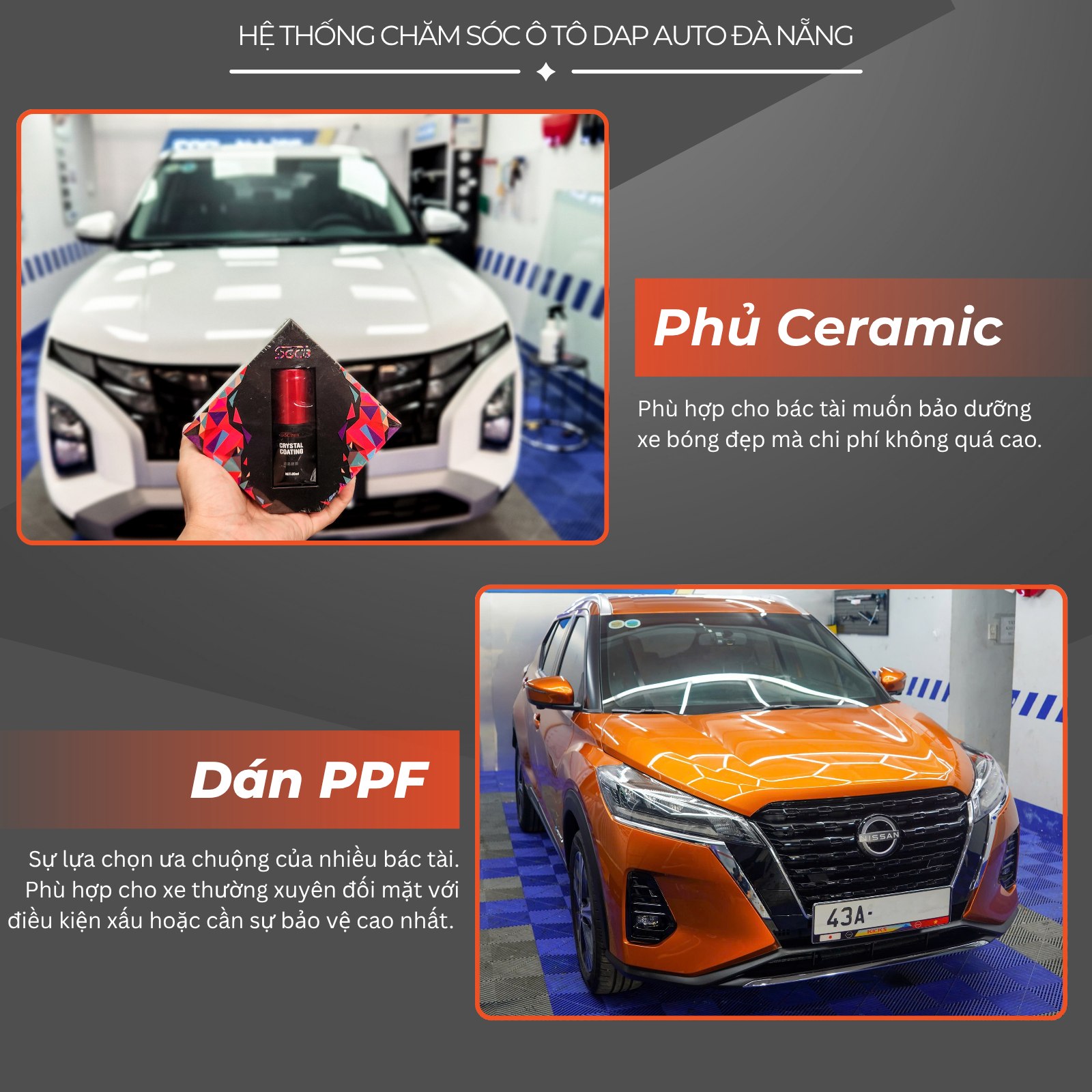 Trong bài viết này, các chuyên viên kỹ thuật của DAP Auto sẽ đặt lên bàn cân để so sánh phủ ceramic và dán PPF một cách chi tiết nhất, giúp các bác tài đưa ra lựa chọn tối ưu cho “xế cưng” của mình.